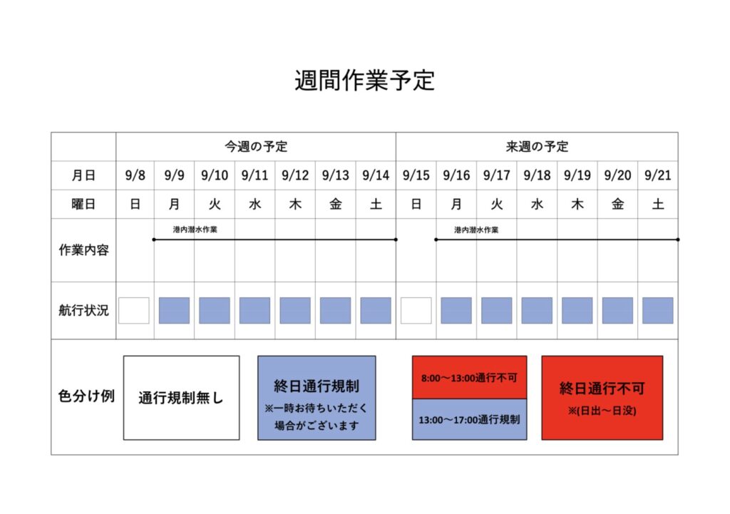 9月6日港内工事情報